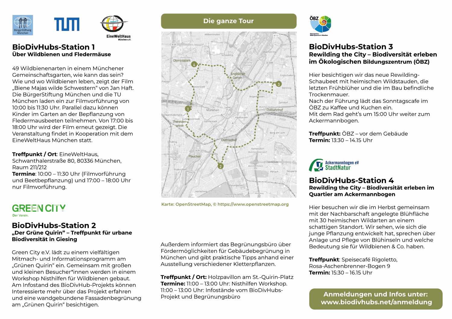 Zum Langen Tag der StadtNatur geben wir Einblicke in vier Quartiere, in denen im Rahmen des Verbundprojekts BioDivHubs neue Lebensräume für Wildpflanzen und Insekten entstanden sind und gerade entstehen. Bei unserer großen Radltour können die verschiedenen Veranstaltungen auch unabhängig voneinander besucht werden.