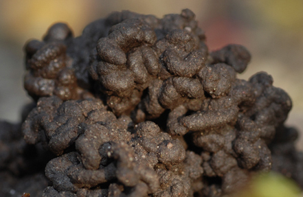 Die Regenwurm-Ausscheidungen bestehen aus fruchtbaren Ton-Humus-Komplexen – beim Fressen von organischen Stoffen, wie z.B. Blattresten nehmen die Würmer auch kleine Mineralkrümelchen des Boden auf. Diese werden dann mit Verdauungsenzymen und Schleim in ihren Mägen zu komplexen Strukturen vermengt und als Erdhäufchen ausgeschieden – wir Gärtner*innen kennen diese Häufchen auch im Kompost, Beet und in der Wiese. Sie sind unser „Gärtnergold“, die einen fruchtbaren Boden garantieren.