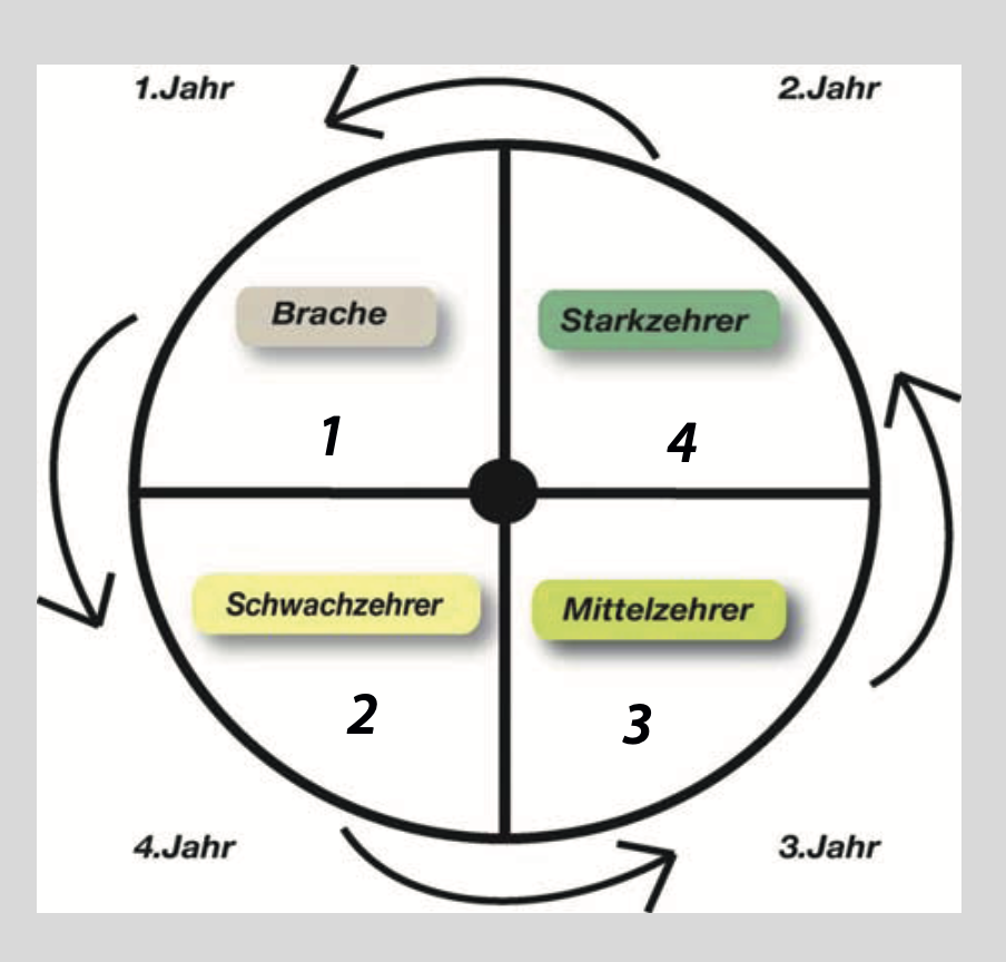 Fruchtfolge/Fruchtwechsel – Planung des zeitlichen Ablaufs der Kulturen. Anbauplanung innerhalb eines Jahres mit Vor – Haupt – Nachkultur, sowie die Planung der Kulturenabfolge für mehrere Jahre.