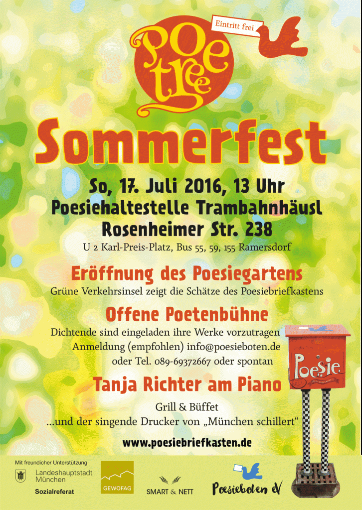 Am 17.7. um 13 Uhr eröffnet der Poesiegarten hinterm Trambahnhäusl in der Rosenheimer Str. 238….